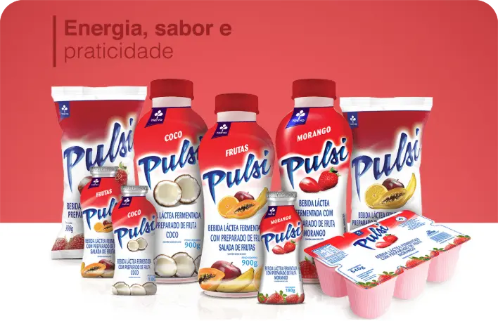 Na linha Pulsi, temos bebida láctea, feita para o consumidor que busca alternativas mais baratas para iogurtes.