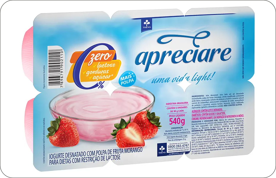 A Trevo também é dona da marca Apreciare, com iogurtes de alta indulgência e da marca Ehrmann, com iogurtes funcionais e ricos em proteínas.
