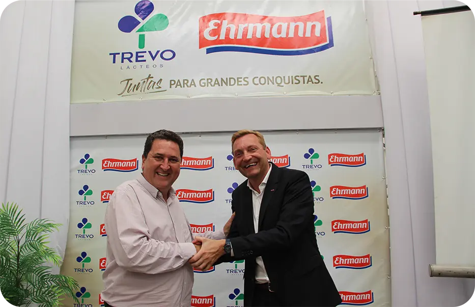 Em 2018, a Trevo Lácteos uniu forças ao grupo empresarial alemão Ehrmann AG, marcando um passo importante em sua jornada internacional. Sob a visão de Cristian Ehrmann, Presidente do Conselho Executivo, a Ehrmann AG busca fortalecer sua posição na Alemanha e expandir globalmente. Essa estratégia é impulsionada por crescimento orgânico e colaborações estratégicas.