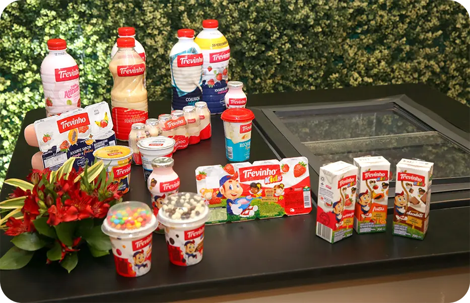Temos a nossa linha Trevo, que conta com iogurtes regulares, gregos, sobremesas e leite fermentado, além da linha Tripla Atitude, feita especialmente para pessoas que buscam produtos sem gordura, sem lactose e sem adição de açúcares.