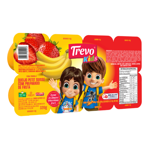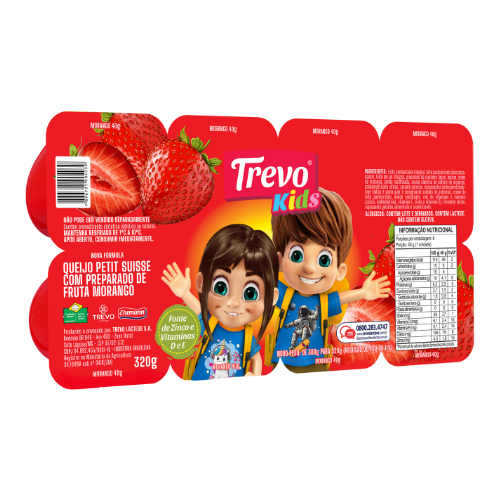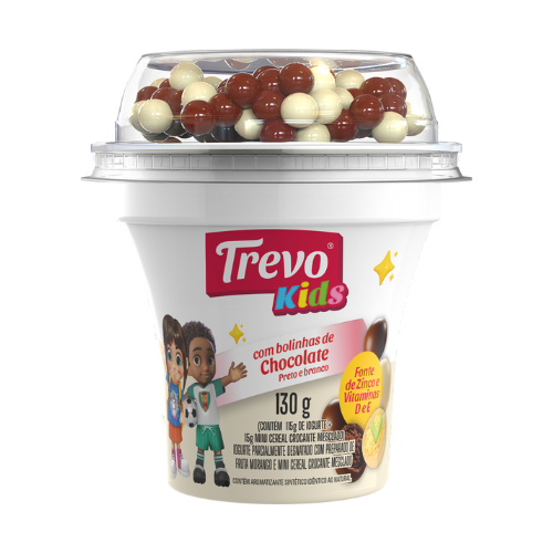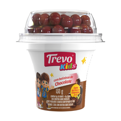 Contamos também com a linha Trevo Kids, com iogurtes, petit suisses e bebida láctea UHT feitos especialmente para pais que buscam nutrição e diversão para os filhos.