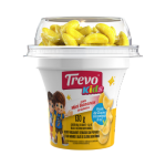 Iogurte parcialmente desnatado com preparado de fruta morango e e balas de gelatina sabor de Banana.